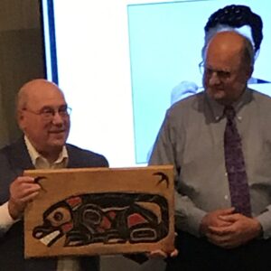 WN: Last week in Canmore Alberta, CoSA Canada held a celebration of 25 years of work with sex offenders returning to the community, and deemed high risk to reoffend. We had a small reception Wednesday October 16 in the evening, during two days of our annual national gathering. There was a presentation of a westcoast carving of a wolf, by an aboriginal prisoner. Harry Nigh (to the left) the recipient is subject of the story below. To the right is Hugh Kirkegaard, our Board Chair, and worked with Harry in organizing the second Circle in Toronto with Wray Boudreo. Behind Hugh is a PowerPoint photo of Charlie Taylor, the first Core Member.