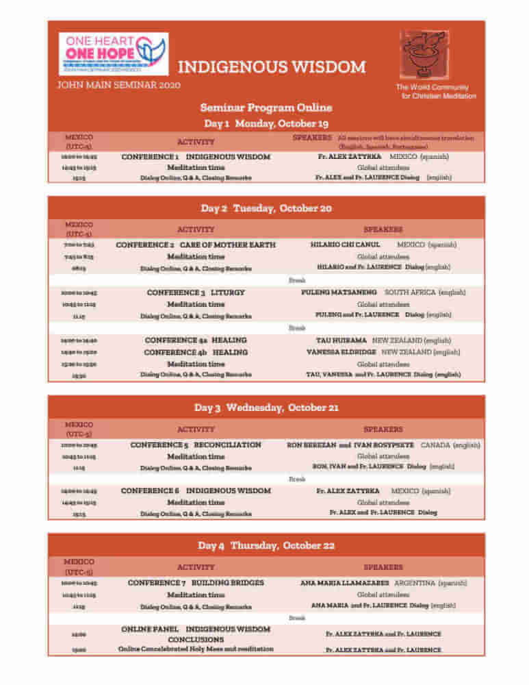 WN: Please consider joining still in this amazing worldwide seminar! The World Community for Christian Community (WCCM) is to be thanked for this looked at in light of the great worldwide trauma the Church delivered to indigenous people . . .
